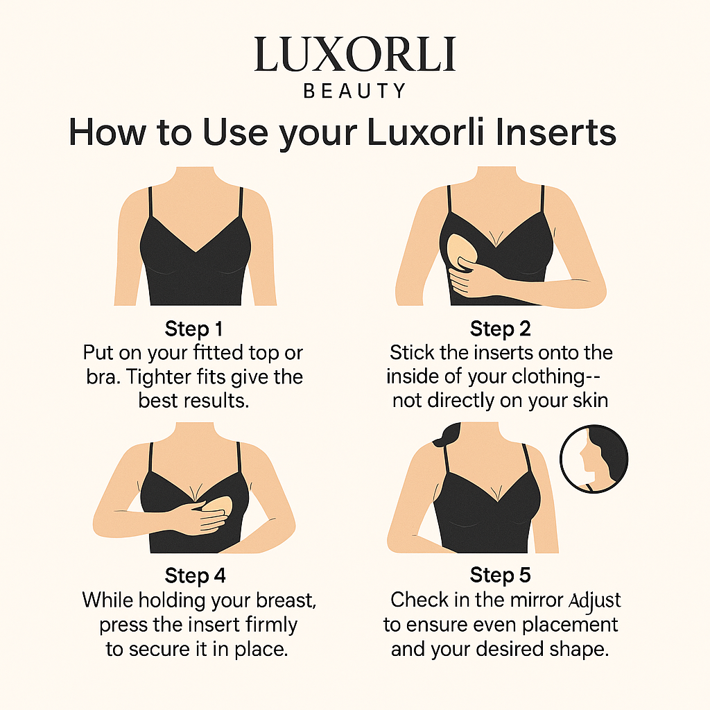 Peel the backing off and position the insert under your breasts. Gently lift and press into place for an instant push-up effect. To reuse, rinse with warm water and let air dry.